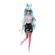 Barbie Extra dolls rock bold fashions and bright colors, and they make big statements! This fashion set includes mix-and-match fashion pieces to create more than 30 different looks for any special occasion. Barbie doll has her own unique style, with long, light-blue hair and a half-up hairstyle tied in a bow. Kids can spin the wheel of fashion featured in packaging to see all the styling pieces included -- one reversible dress, one furry cape, three skirts, one pair of sparkly pants, two tops, two pairs of shoes and eight additional accessories! Her pet kitten has tons of personality too, with a tiara, golden necklace and personal mirror. With 11 'joints', this pose-able, articulated doll is always ready to confidently strike a pose -- bringing EXTRA vibes wherever she goes! Doll cannot stand alone.