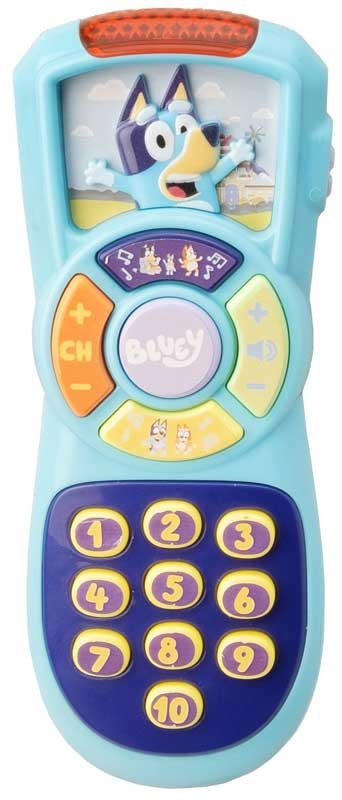 Flick through the channels with Bluey’s Remote Control. The interactive Bluey remote offers 15 buttons with an LED light that flashes when any button is pressed, as well as over 5 sound features. Your little one can change the channel, play the songs, and press the numbers with sounds supporting their development and inspiring imaginative play. This role play learning toy has plenty of stimulating features to keep little ones entertained as they learn and discover.