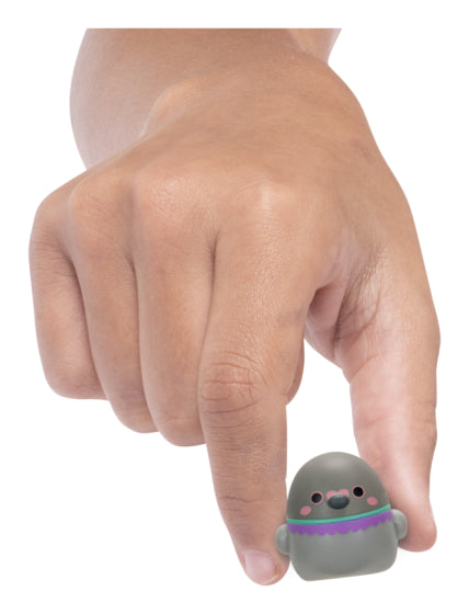 Get ready for a new level of squish with Squish-a-longs, the latest addition to the Squishmallows family! An adorable and portable collectible, Squish-a-longs Mini-Squish, made of squeezable plastic, is perfect with its 1-inch size! The fun is endless, with over 140+ Mini-Squish to collect, trade, play, wear, and display! Show off your fandom by wearing the ring and dressing your Mini-Squish with fun accessories like a headband and sunglasses. There are three chase items to find: Emily the Black Bat, Oha the Dark Purple Sea Bunny, and an all-new rare star stand! You can collect them all with the helpful collector's guide - start your Squish-a-longs collection today!