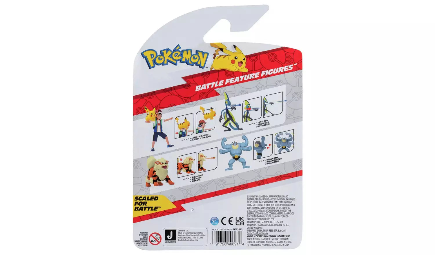 Get the NEW Pokemon 4.5 Inch Ash & Pikachu figure with dynamic articulation and features. Ash Ketchum is the main character of the Pokemon animated series and he's here with his partner Pokemon, Pikachu to launch into battle! This 4.5 inch in scale figure features authentic details and unique dynamic mechanisms that allow Ash to launch Pikachu . An Official Pokemon Product from Jazwares. Suitable for ages 4 years and up.