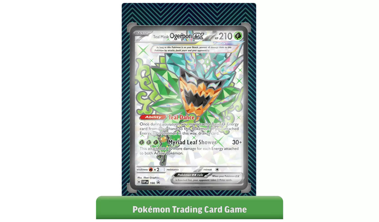 Unmask the Power of a Legend! The Legendary Pokemon, Ogerpon, is an adorable yet fierce force to be reckoned with, and Terastallizing takes its strength to even greater heights! With this collection, you can team up with Teal Mask Ogerpon as a Tera Pokemon ex, joined by another version of Teal Mask Ogerpon and the Ogre's Mask Trainer card as special foil cards. A card protector, a set of card sleeves and a stack of booster packs make your new friendship with Ogerpon even more sweet!
