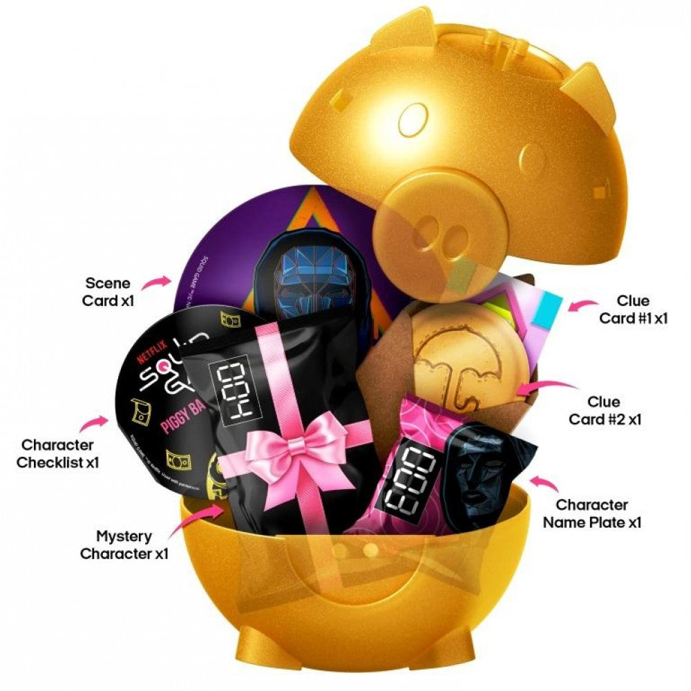 Unbox the golden piggy bank to find a ton of surprises, including one of six collectable mini figures featuring characters from the TV show, such as; Front Man, No-Eul, Seong Gi-Hun, Young-Hee, Masked Manager and Seong Gi-Hun with Red Hair. Each mystery figurine measures 15cm (6 inches) tall and can be shown proudly using the piggy bank which doubles up as a display stand.