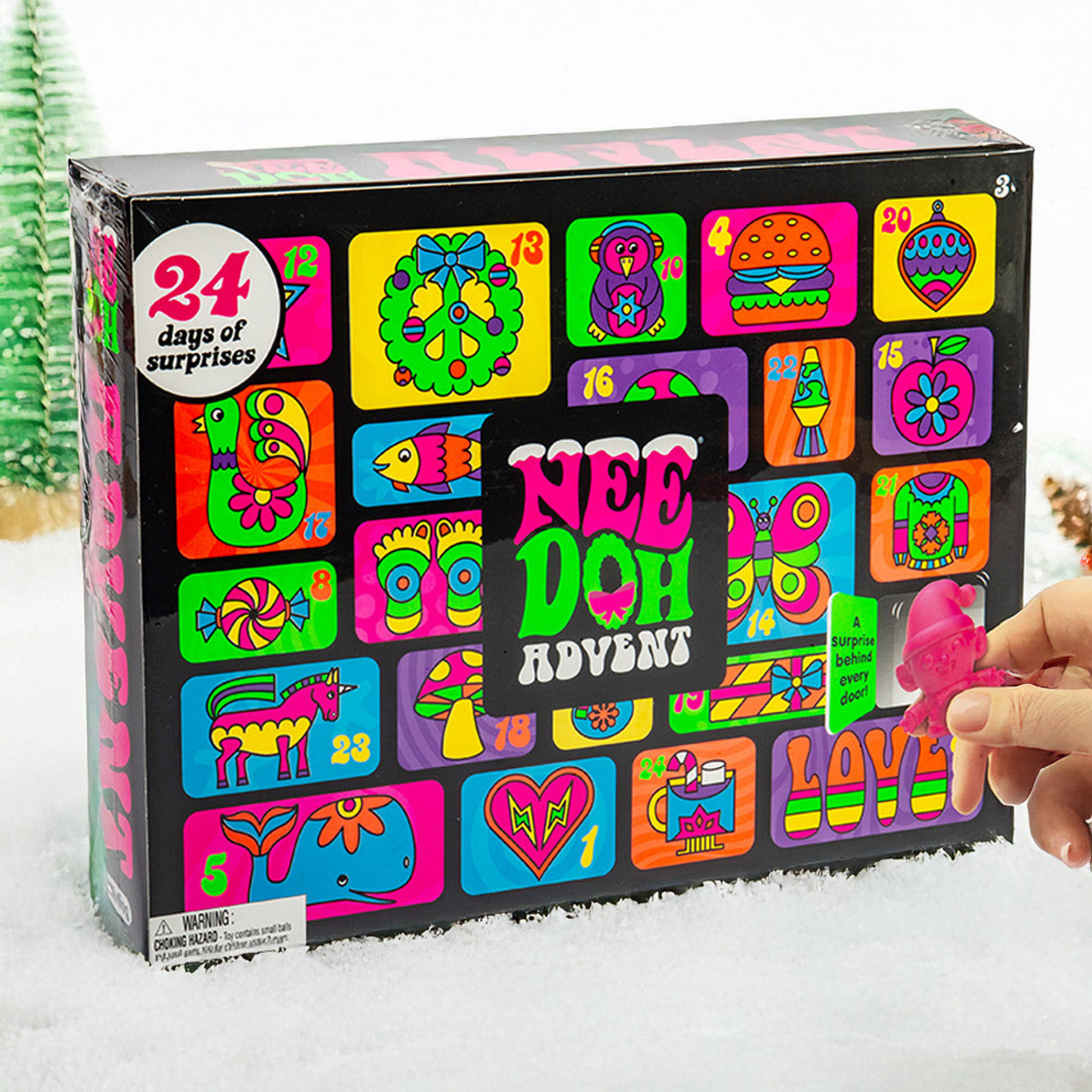 Count down to Christmas with a daily discovery of mini fidget toys! The NeeDoh Advent Calendar features 24 days of holly jolly squishes. Throughout December, kids can pop open each door to reveal a new NeeDoh hiding inside.This fidget toy advent calendar is full of fun surprises and Christmas fidget toys to celebrate the festive season. By Christmas Day, your little sprouts will have a ho-ho-whole new set of squishy fidget toys to add to their collection.Safe, child-friendly, and non-toxic, NeeDoh fidgets are filled with a stretchy, dough-like material that always bounces back to its original shape. Suitable for 3+ years.NeeDoh Advent Calendar - product features:
