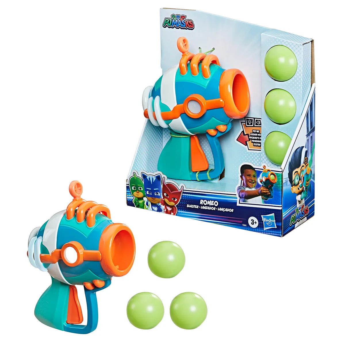 The Romeo Blaster toy will thrill fans of the PJ Masks night-time nemesis. This entertainment-inspired gadget launches 3 lightweight plastic balls